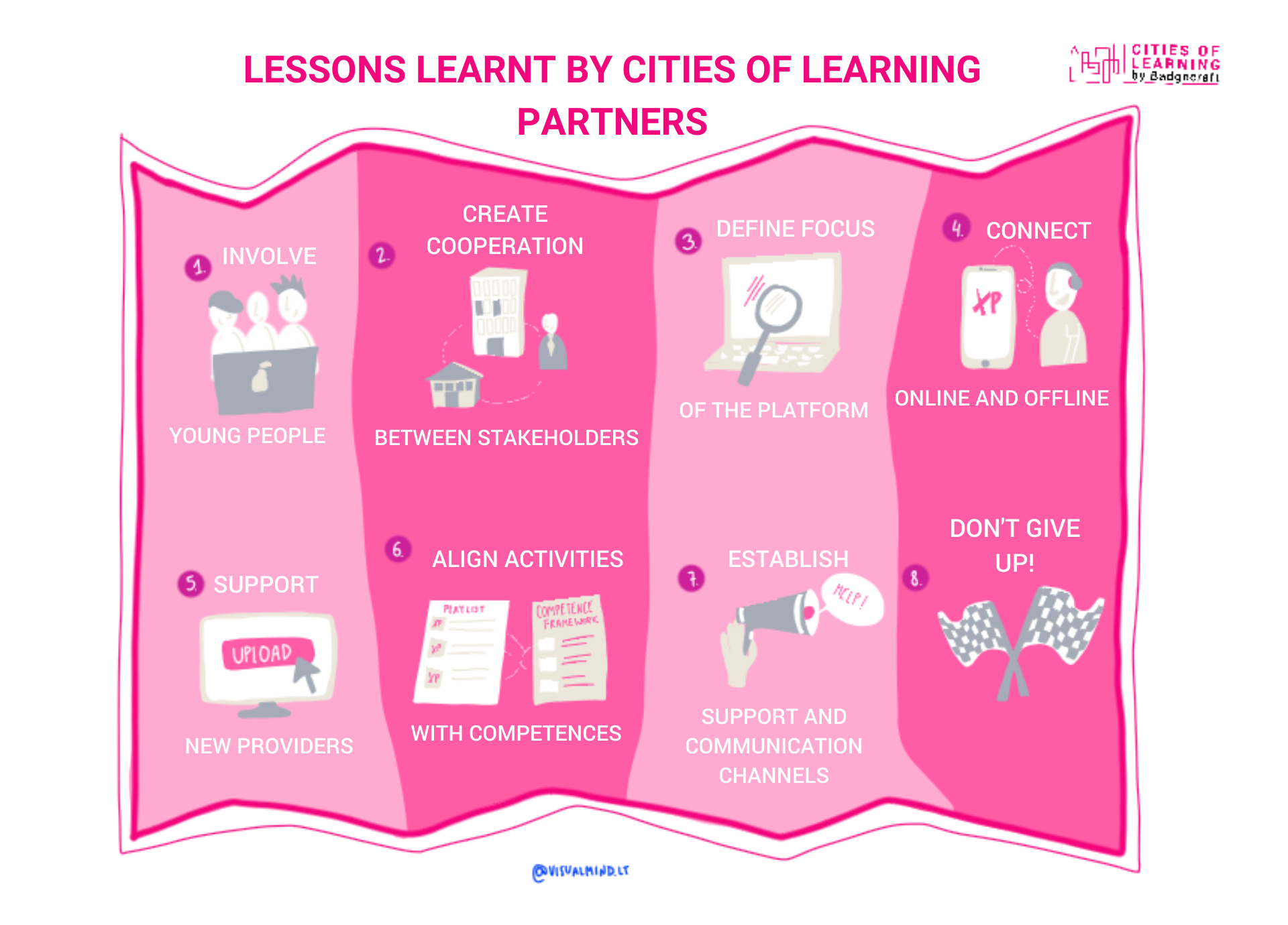 In the last years Cities of Learning platform network partners have been trying and learning and trying again to find the best ways to engage cities and regions to join this learning evolution. The accumulated experience in various educational fields turned into a list of ‘Lessons Learnt’, clear ‘Values the platform is based’ on and ‘6 easy steps on how to create a learning playlist’ from our partners. Have a look at the wisdom of our partners – it is always easier to learn from others!